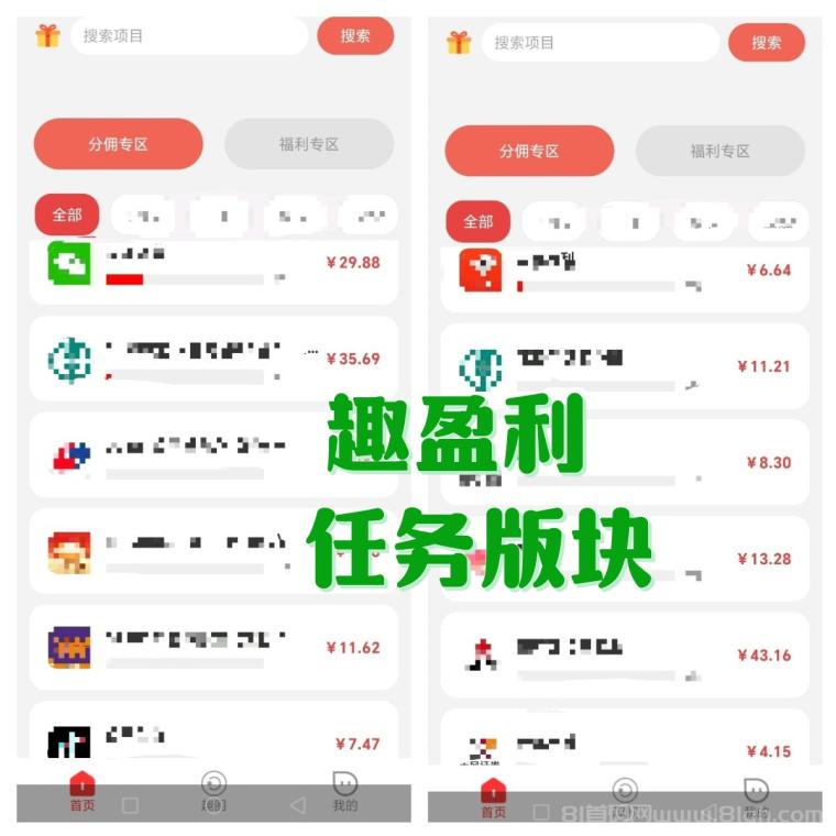 趣盈利APP各个版块收益: