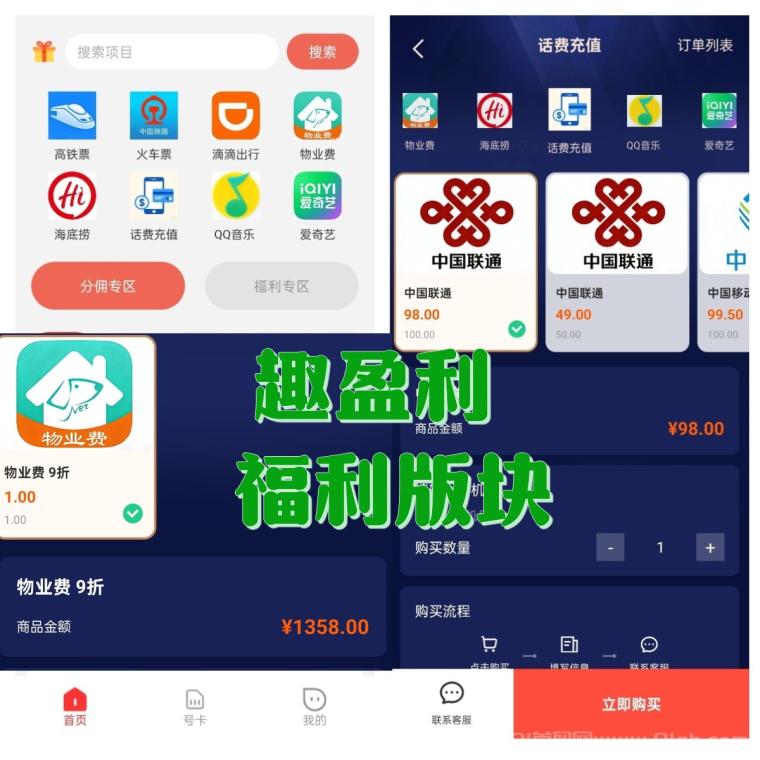 ③号卡板块:自用和推广都有佣金,每张卡平均佣金60+,有团队长期管道。