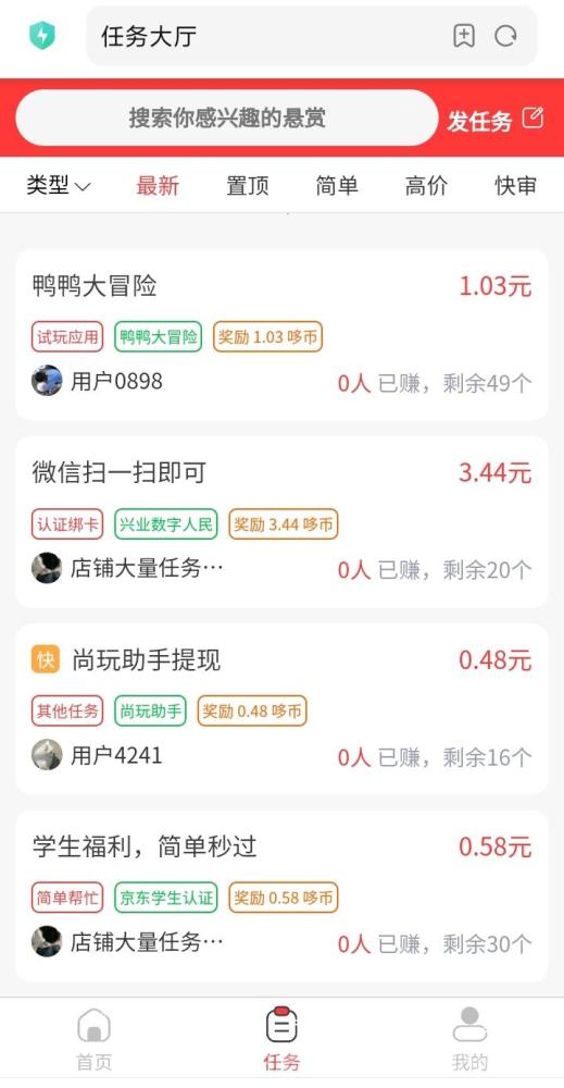 2、软件上提供了种类丰富的赚钱小任务,按照雇主要求完成,即可获得源源不断赏金;