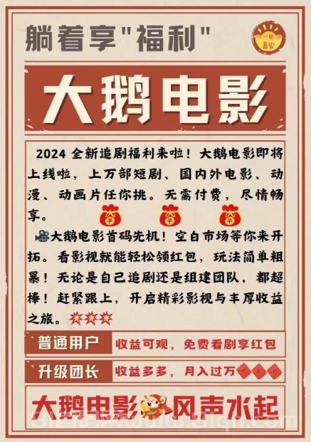 正文 大鹅电影首码:零撸赚钱天花板,推广收益丰厚! admin V管理员 /2024-09-29 /0 评论 /8414 阅读 0929 此篇文章发布距今已超过442天,您需要注意文章的内容或图片是否可用! 大鹅电影,一个全新的免费看短剧和刷视频赚钱平台,首码刚刚推出,为用户提供了前所未有的赚钱机会。在这里,你可以免费观看上万部热门短剧,边看边赚,轻松撸取5000,0.3元起即可秒提,秒到账。项目亮点:绿色安全:纯零撸,免费玩,操作简单,无需任何投入。高额收益:轻松撸取5000,0.3元起即可秒提,秒到账。推广奖励:邀请好友加入,可获得20%-40%的邀请收益,好友首次注册即可获得99元奖励。团长机会:有能力的用户可以开启团长模式,享受团队分成奖励。立即加入大鹅电影,体验零撸赚钱的乐趣,开启你的财富增长之旅! 版权声明:本文内容由互联网用户自发贡献,该文观点仅代表作者本人。合作之前建议签订合同,本站仅提供信息存储空间服务,不拥有所有权,不承担相关法律责任。请勿盲目下载注册。若您不同意该提示,请关闭网页且不要在本站拓展任何合作,否则造成的任何损失由您个人承担。如发现本站有涉嫌抄袭侵权/违法违规的内容, 请发送邮件至:1442121520@qq.com
