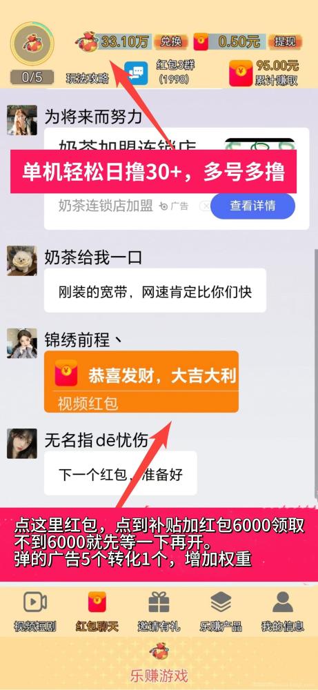 乐赚鹿鹿平台为玩家提供了丰厚的补贴政策。玩家的福利不仅体现在广告收益上,平台还承诺如果开包不够6000,平台将直接补贴至6000元。这种慷慨的补贴政策极大地提升了玩家的收益,使得每个人都能享受到平台的福利。