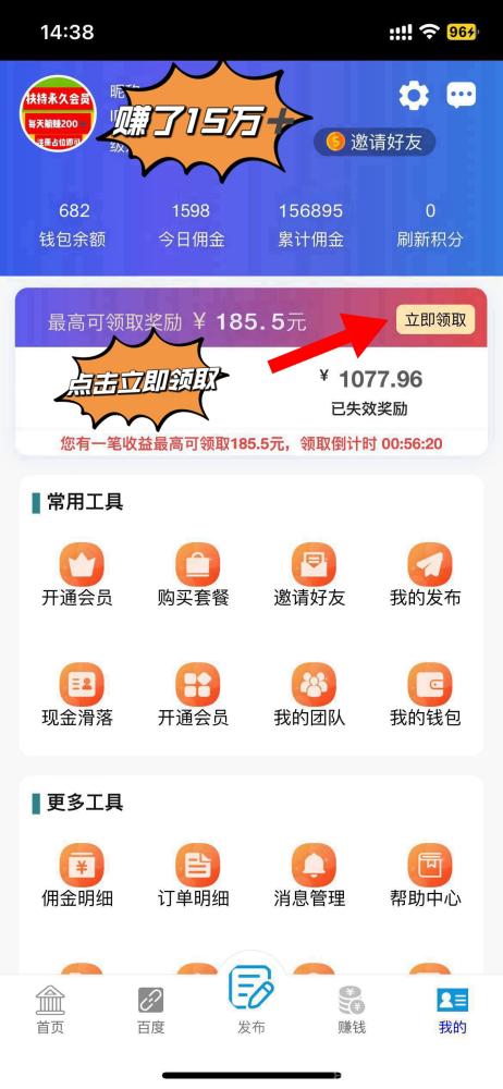 第二种:浏览赚,升级会员后,每天可以浏览赚钱,多劳多得,每条广告看15秒时间,然后有0.5~18元佣金,每天保底50元以上。
