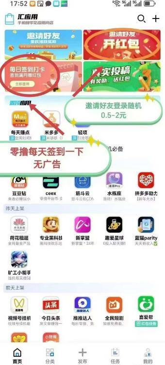 在汇应用平台上,用户只需每日签到即可领取红包,无需观看广告,操作简便快捷。无论是学生、上班族,还是自由职业者,都可以通过这种方式轻松赚取零花钱。每日签到不仅能积累收益,还能培养良好的习惯,让赚钱成为一种乐趣。