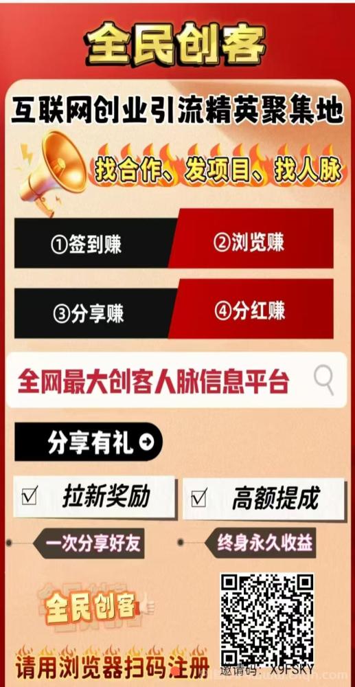 全民创客注册:https://ck.shshuo.cn/#/pages/register/register?code=X9FSKY