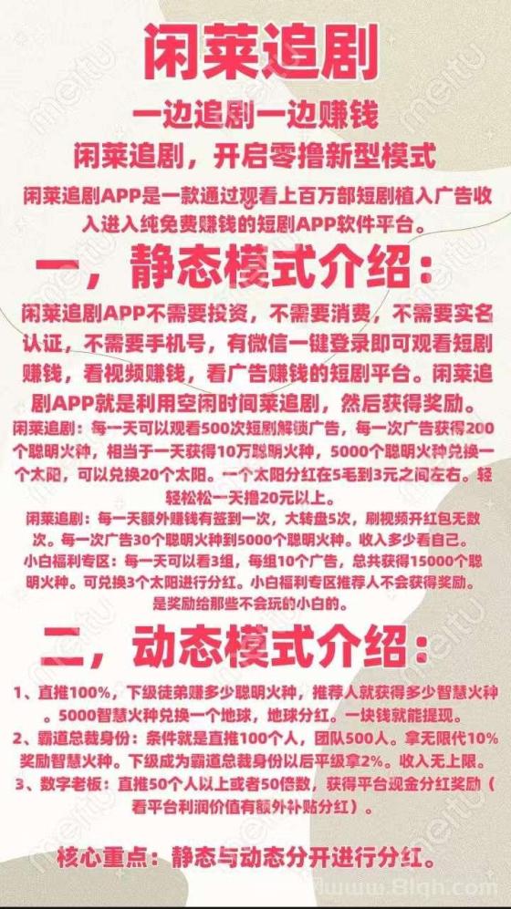 闲莱追剧APP,通过这款APP,用户不仅能免费观看短剧,还能通过观看广告每天零撸20米,真正实现娱乐赚钱两不误。