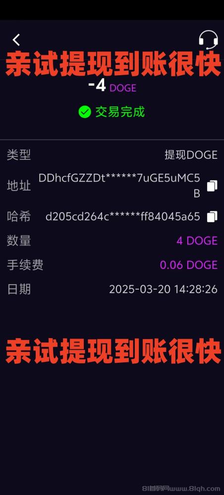 在DOGE生态项目中,用户可以自由交易自己获得的狗狗币,灵活选择提现方式。平台支持多种提现方式,最低4个狗狗币即可提现,真正做到无门槛、随时提现,到账速度非常快。这种灵活的机制,让用户可以随时将收益变现,极大地提升了用户的资金使用效率。