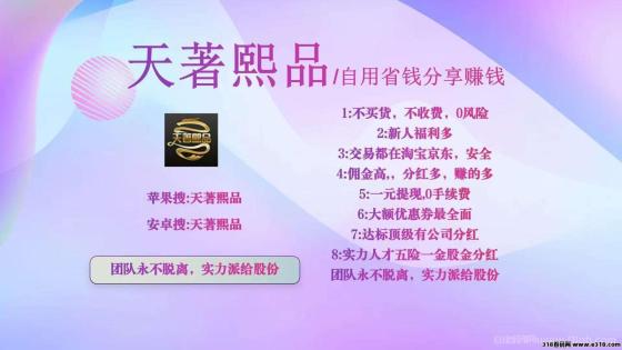 天著熙品内测四年强势来袭,招收第一批团队长。适合社群大佬、微商团队长、顶尖讲师、落地陪跑等对优惠卷返利有了解、有裂变团队经验的伙伴。新风口已起,选对方向,趁早入局,跟进趋势,全面抢跑。