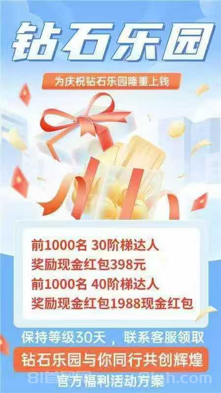 钻石乐园新项目刚刚上线,没有广告,零撸可以提现,不需要任何投入。每天最少能撸1.1元,五秒钟完成,速度开干,能玩几个月。直推每增加一个,每天多1元,100个直推,每天零撸100元。