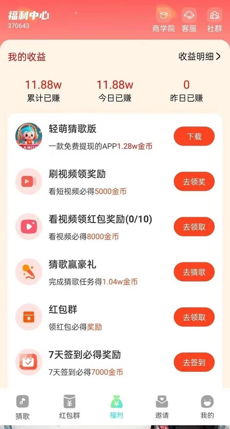 多样玩法,每日猜歌赢豪礼,刷短剧、看短视频、看广告都能获得大量金币,金币直接兑换大米提现。