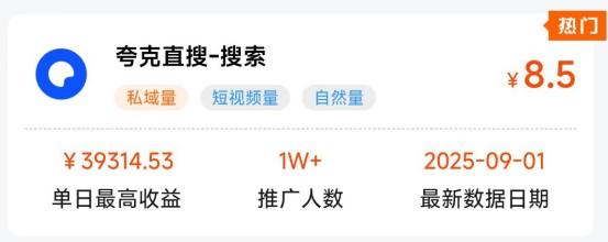 日常拉新奖励:每成功引导一位用户下载夸克APP并完成指定关键词搜索,即可获得8.5元/单的收益。