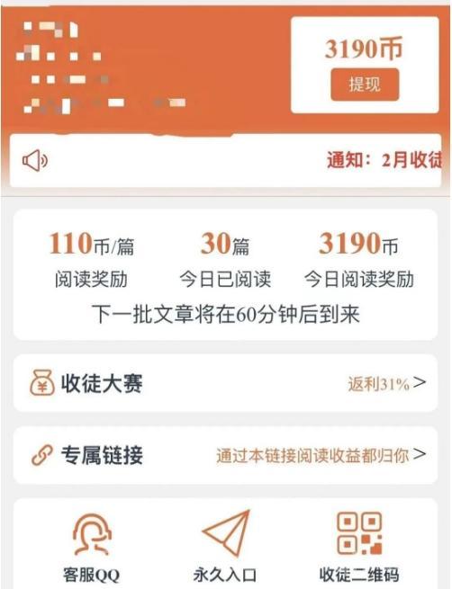 推广是可乐阅读项目中一个非常重要的环节。项目设置了两级返利机制,一级返利高达15%,而二级返利最高可以达到16%。这意味着,你直接邀请的徒弟每完成一轮阅读,你可以获得他们收益的15%作为提成;而你的二级徒弟(即你徒弟的徒弟)每轮的提成也能达到16%。假设每个徒弟平均每轮能赚取0.3元,那么六轮下来就是1.8元。如果你有300个活跃徒弟,那么每天仅从徒弟那里就能获得至少60元的收益。