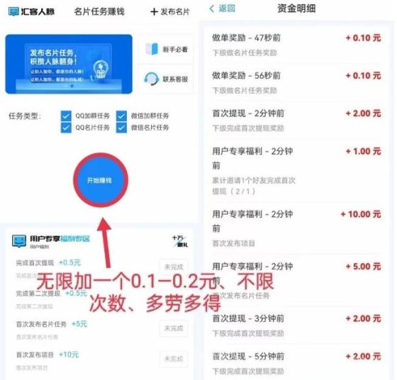 汇客人脉平台用户只需每天登录并完成一些简单的任务,就能轻松赚到3至10元不等的收益。